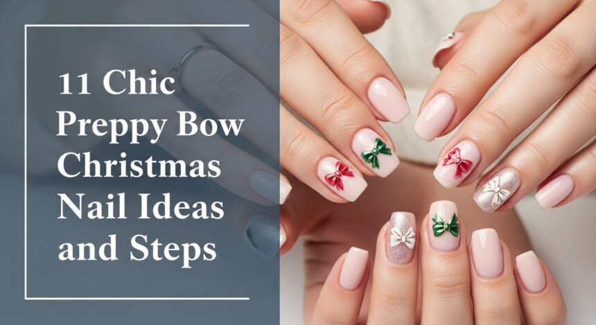 11 Chic Preppy Bow Christmas Nail Ideas and Steps